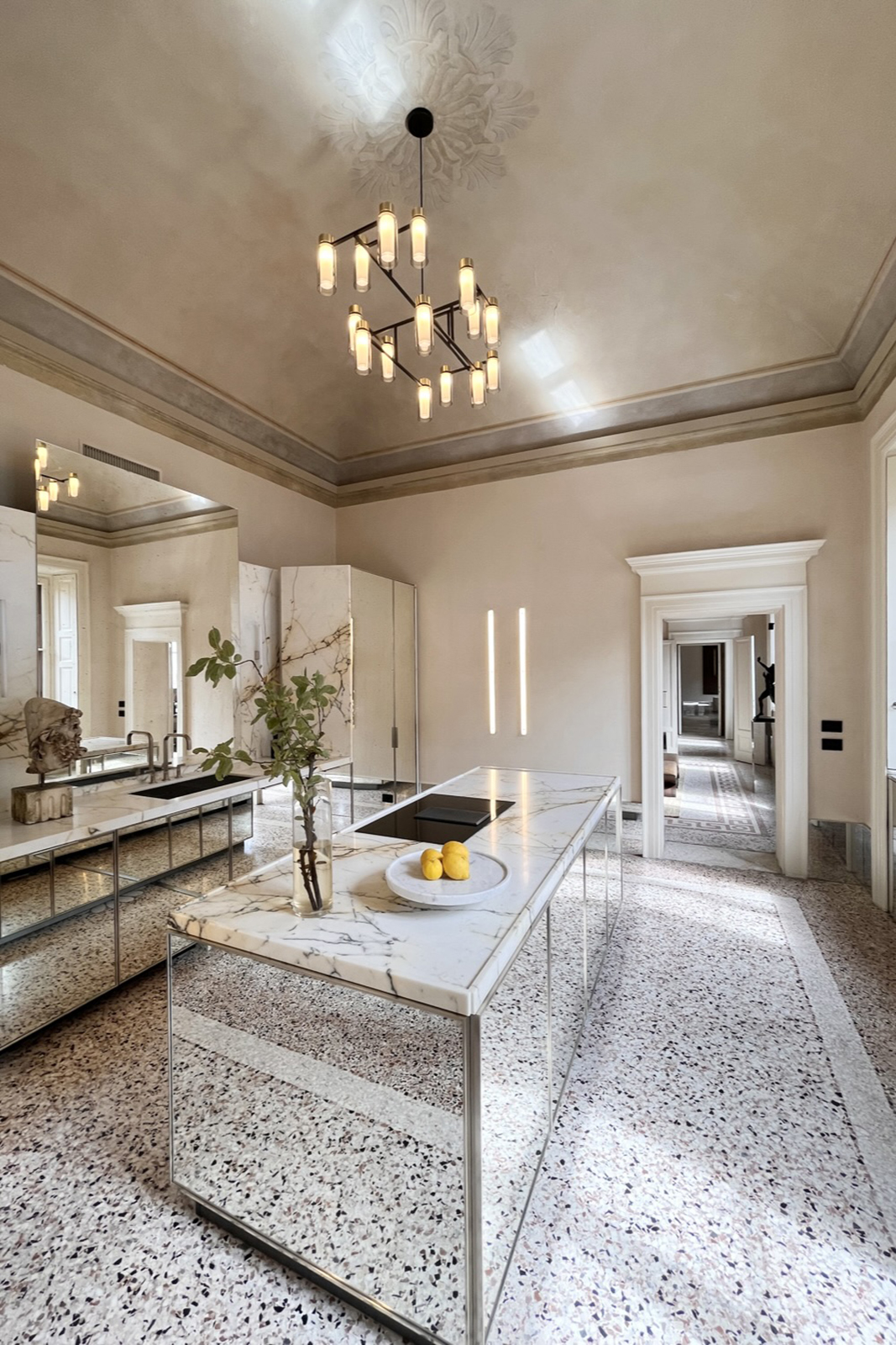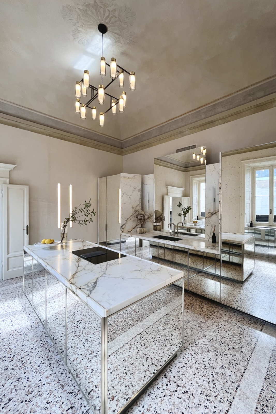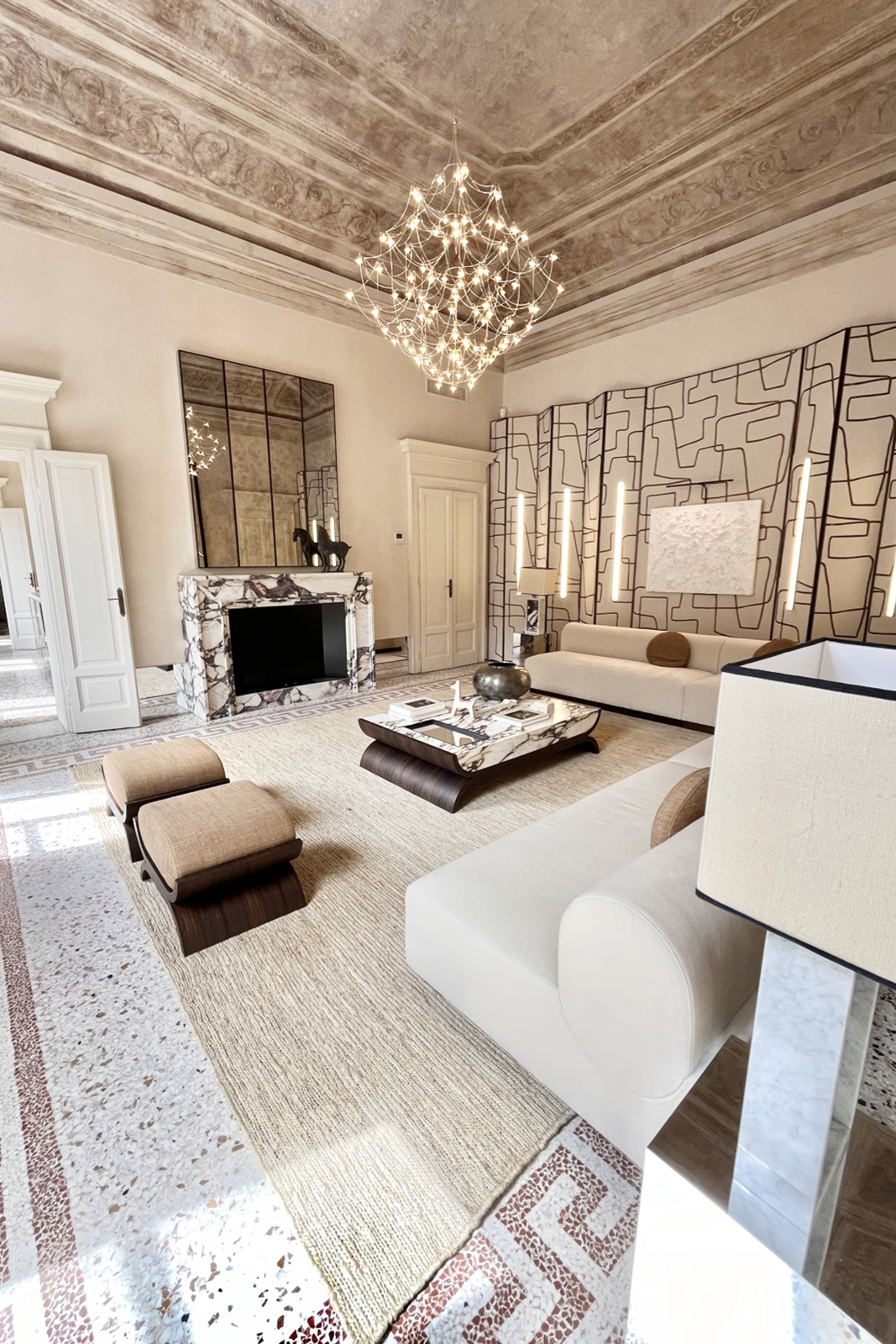 Questo spazio polifunzionale di circa 300 mq, situato al piano nobile, è concepito come un contenitore creativo in cui l'atmosfera è un mix armonioso tra eleganza contemporanea e la magnificenza architettonica ottocentesca.