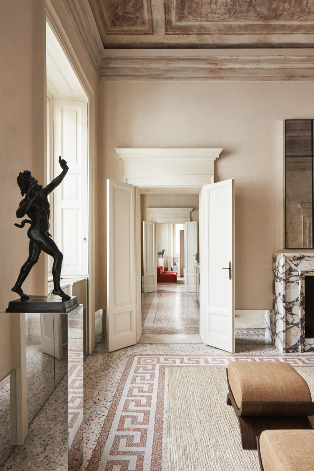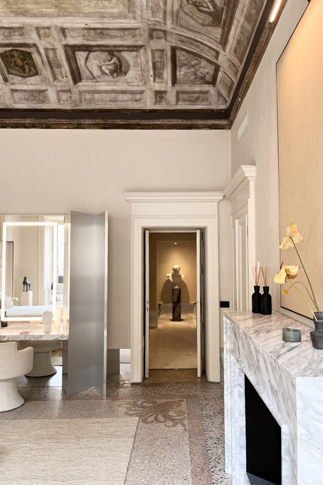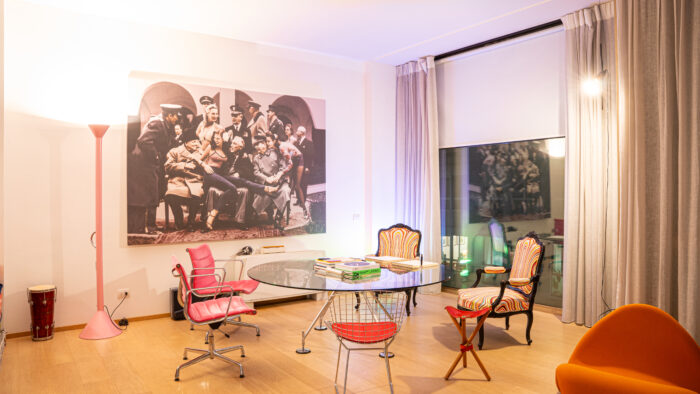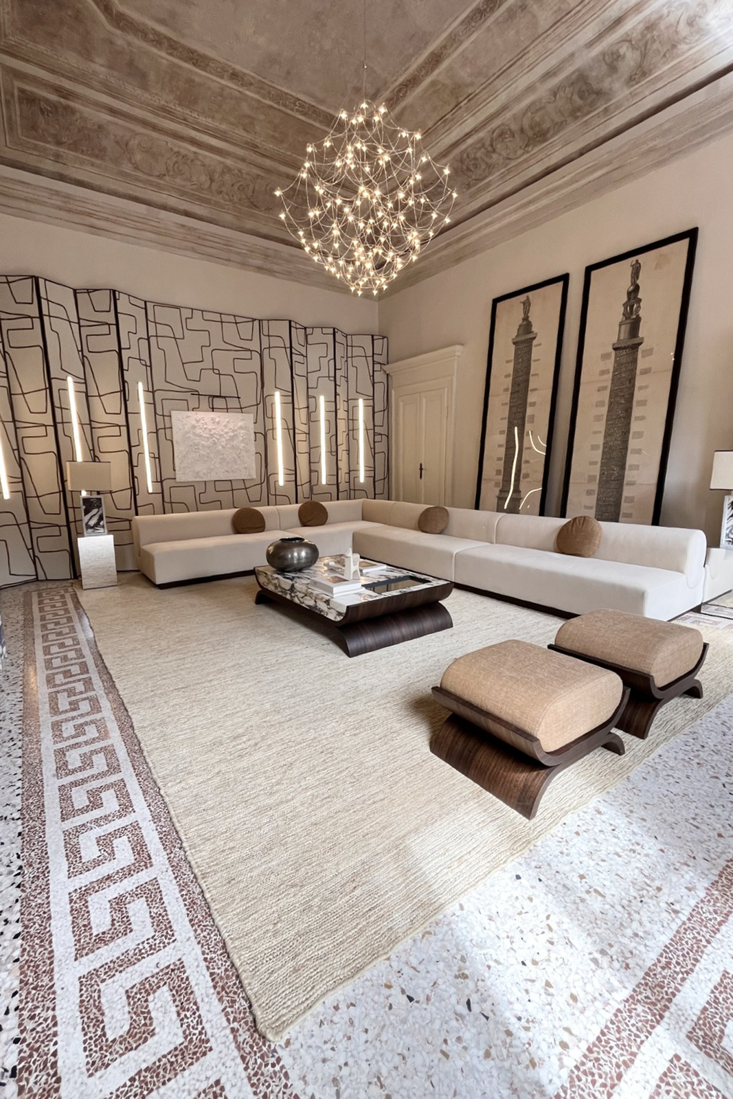 Questo spazio polifunzionale di circa 300 mq, situato al piano nobile, è concepito come un contenitore creativo in cui l'atmosfera è un mix armonioso tra eleganza contemporanea e la magnificenza architettonica ottocentesca.