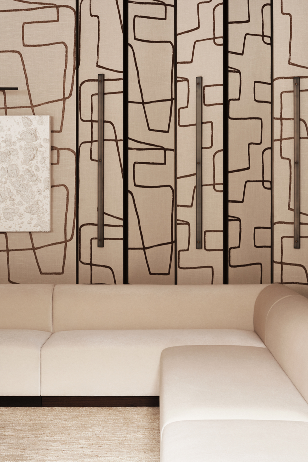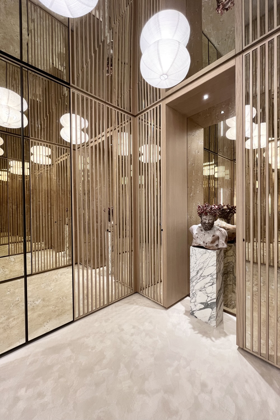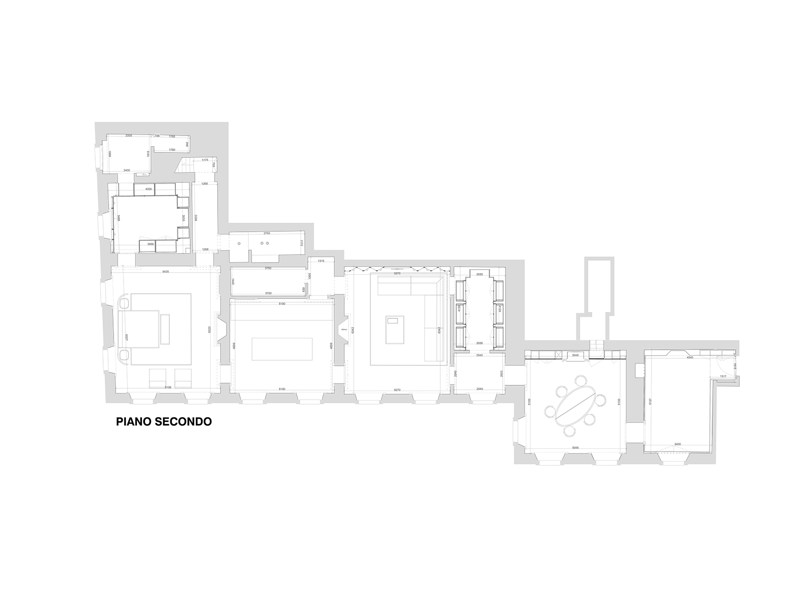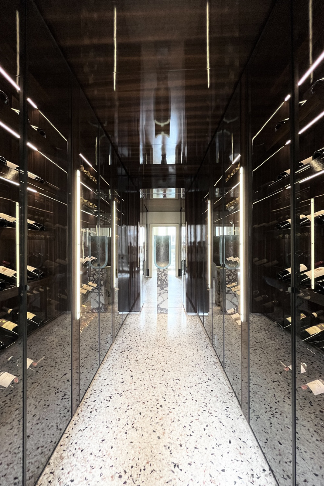 L'appartamento si sviluppa attraverso sette ambienti principali: ingresso, sala da pranzo, cantina vini, salone, cucina, camera da letto con cabina armadio e toilette. Per gli eventi, lo spazio offre anche due aree di servizio aggiuntive e due bagni di cortesia.