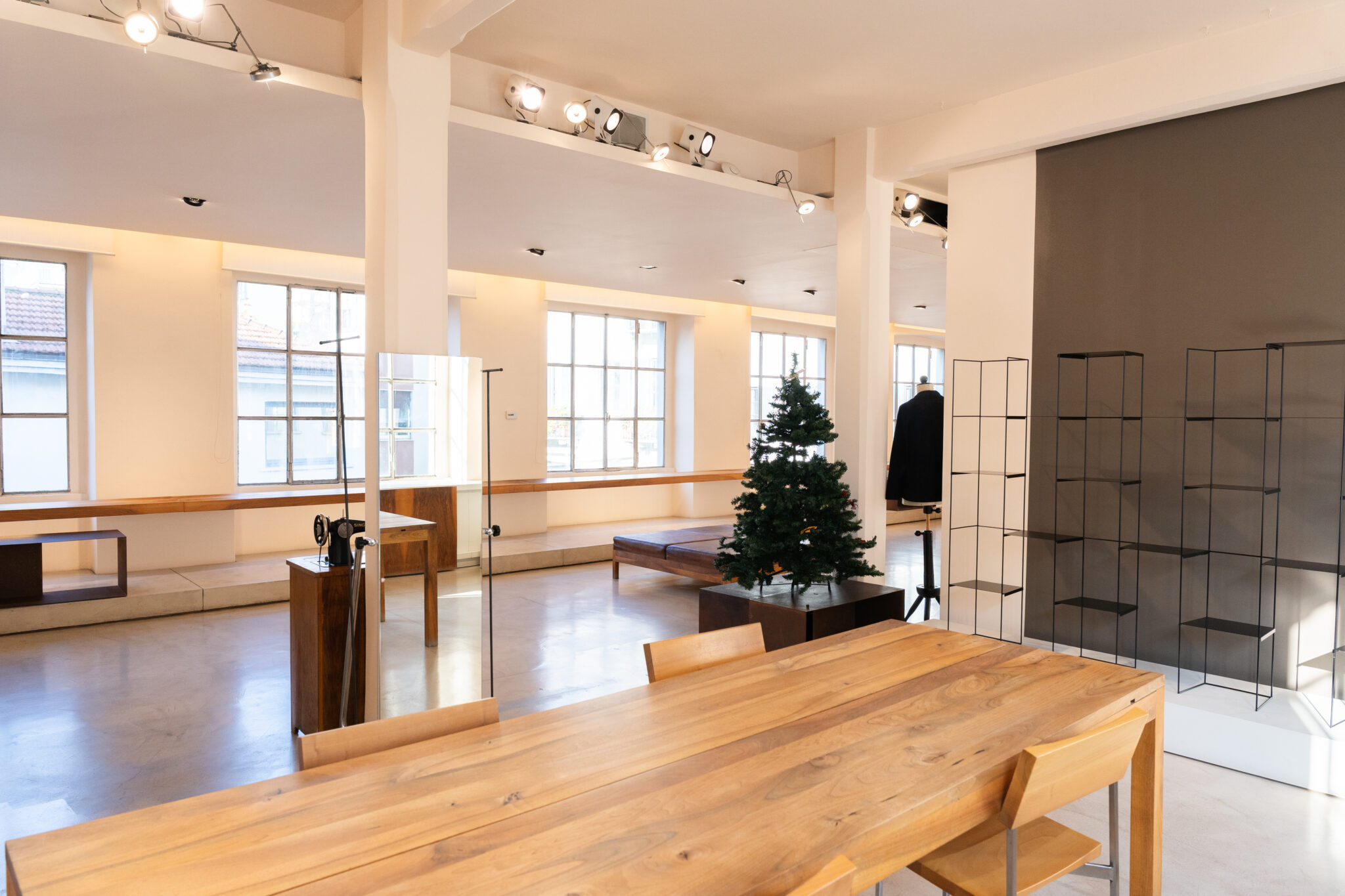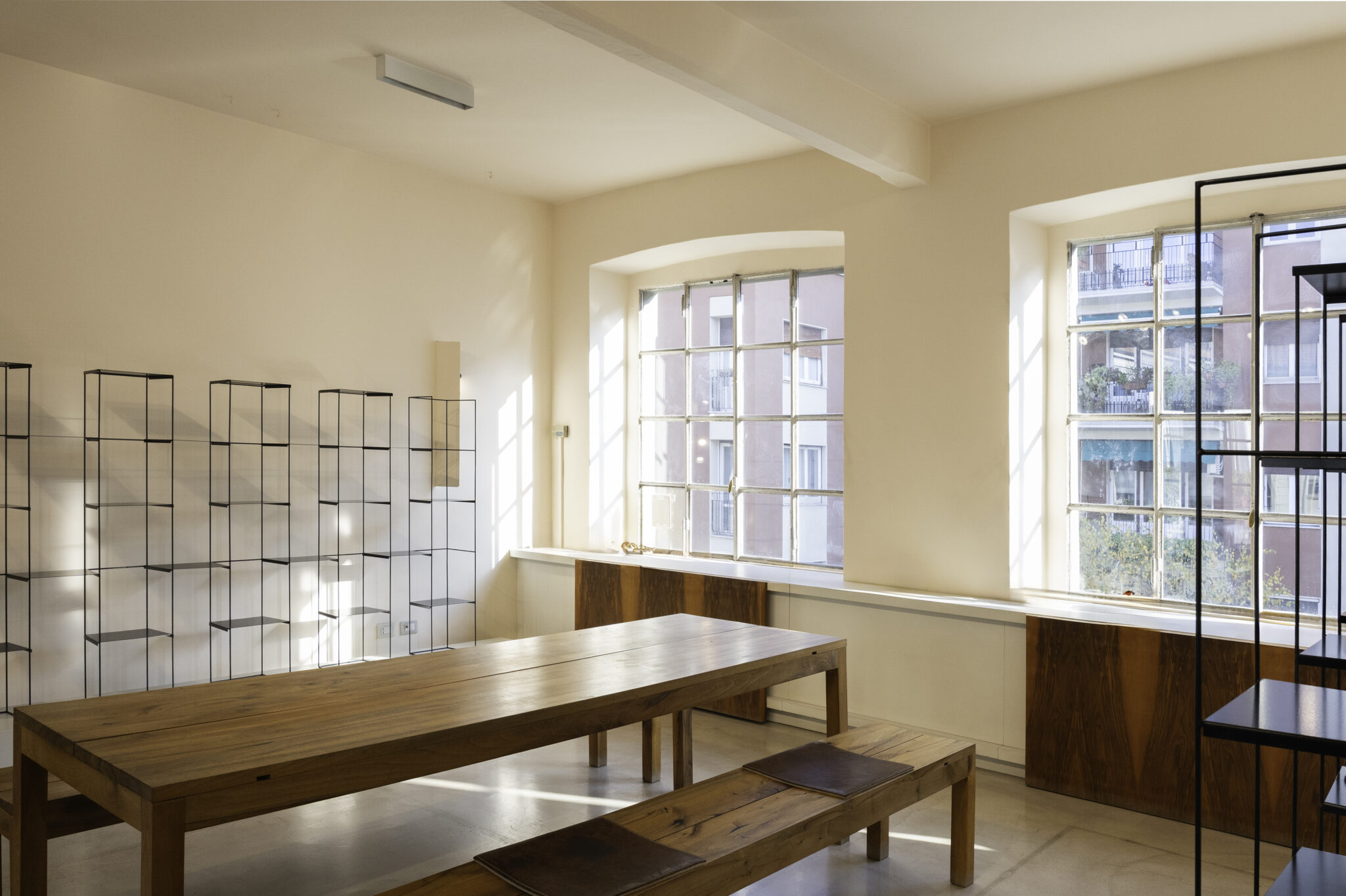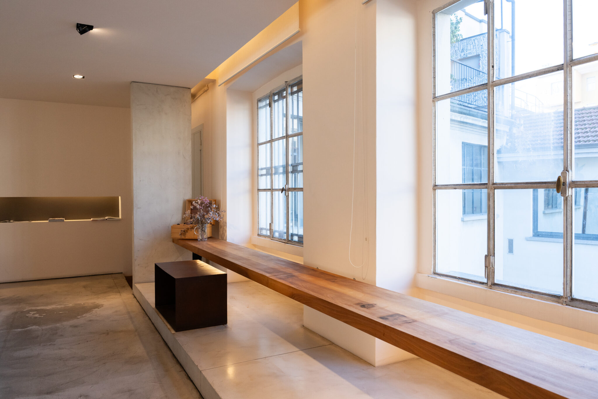 Spazio eventi luminoso ed essenziale, caratterizzato da un’estetica pulita e minimale, grandi finestre a tutta altezza e materiali naturali che valorizzano la luce e la percezione dello spazio.