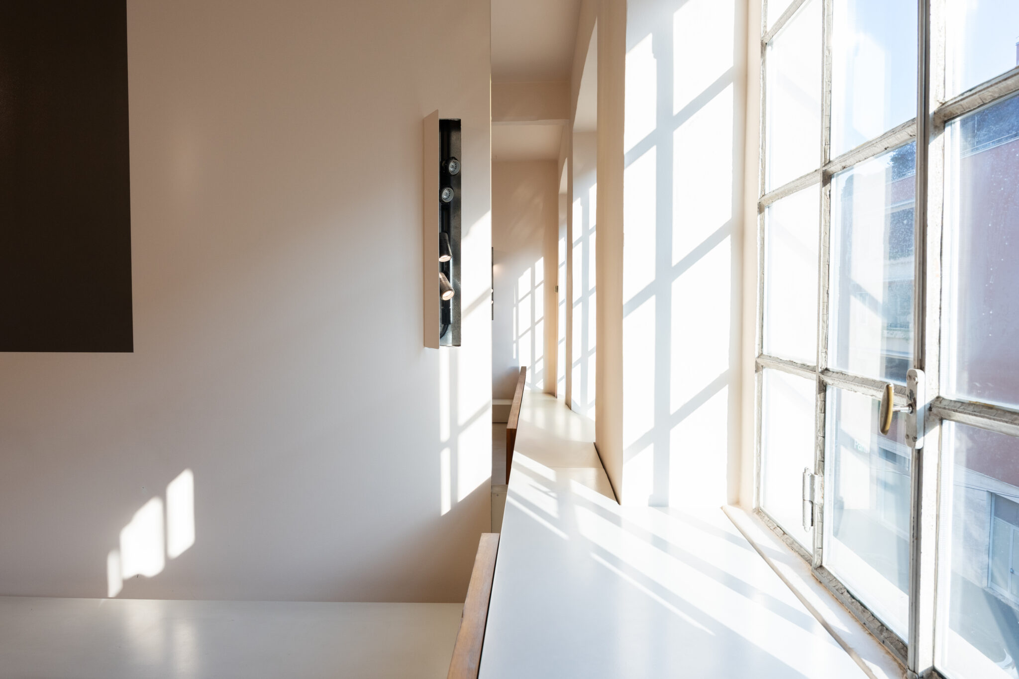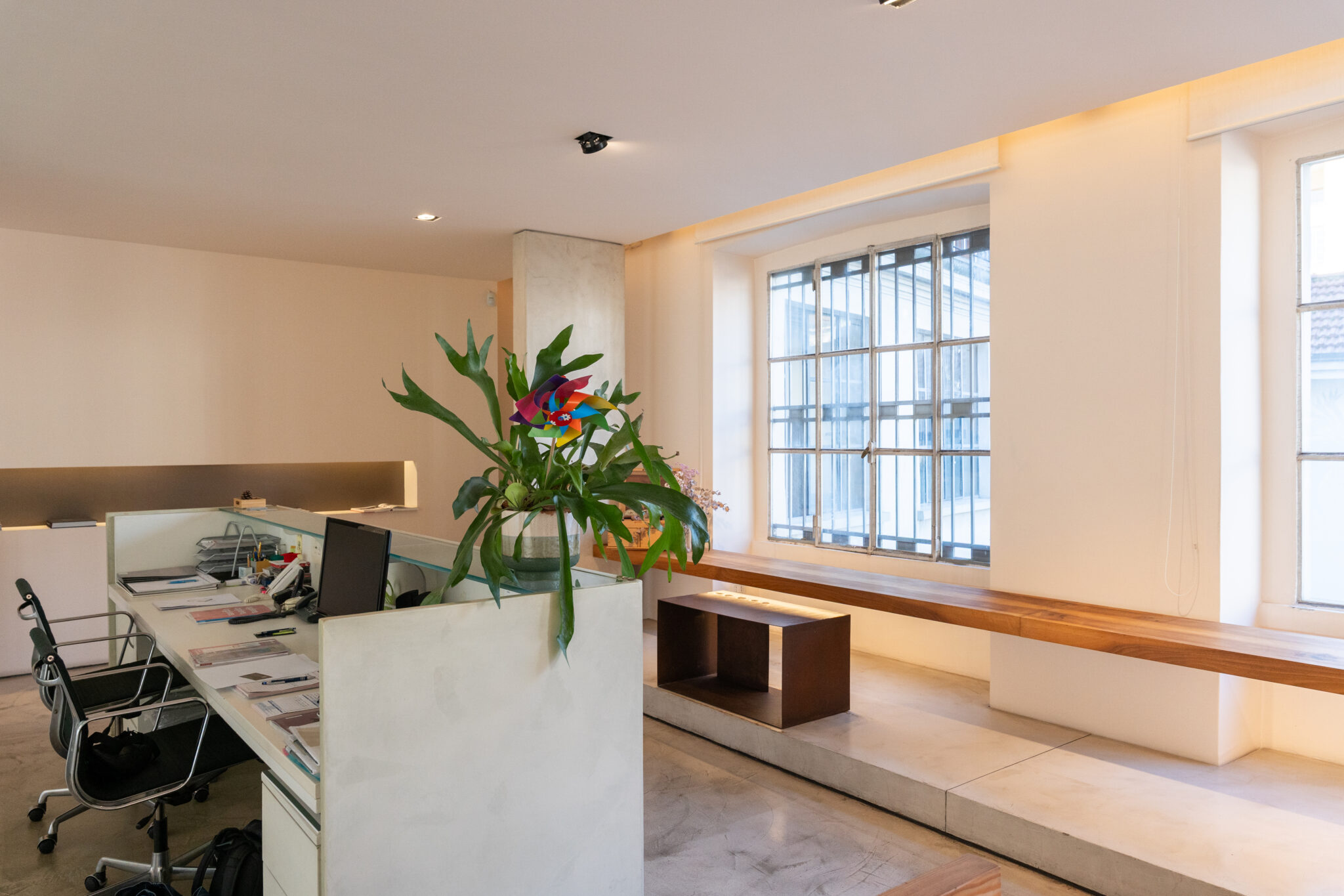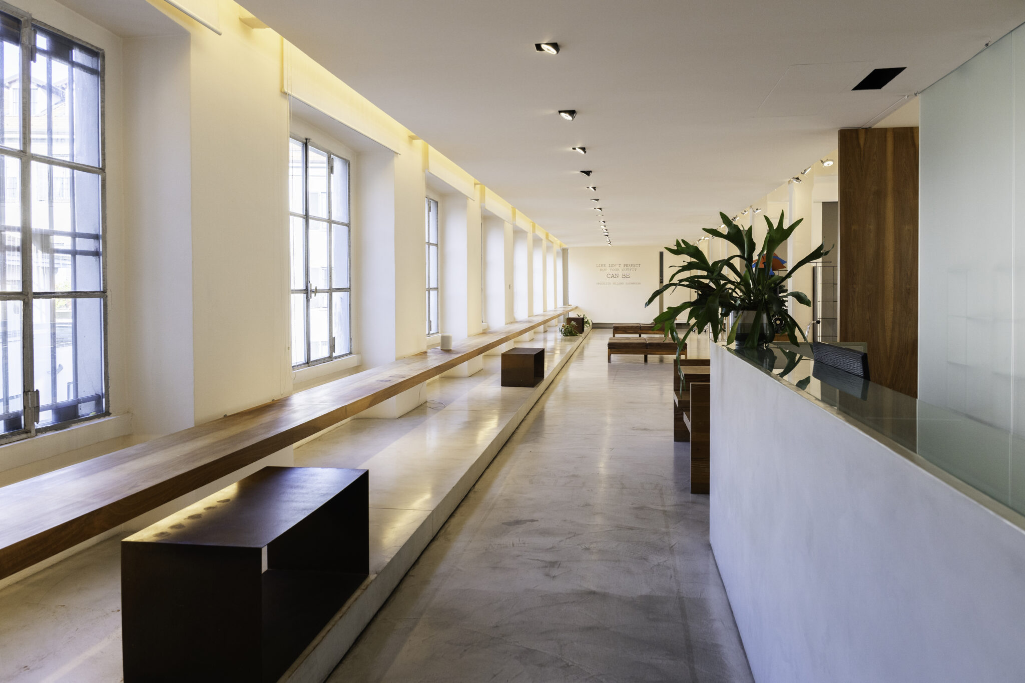 Spazio eventi luminoso ed essenziale, caratterizzato da un’estetica pulita e minimale, grandi finestre a tutta altezza e materiali naturali che valorizzano la luce e la percezione dello spazio.