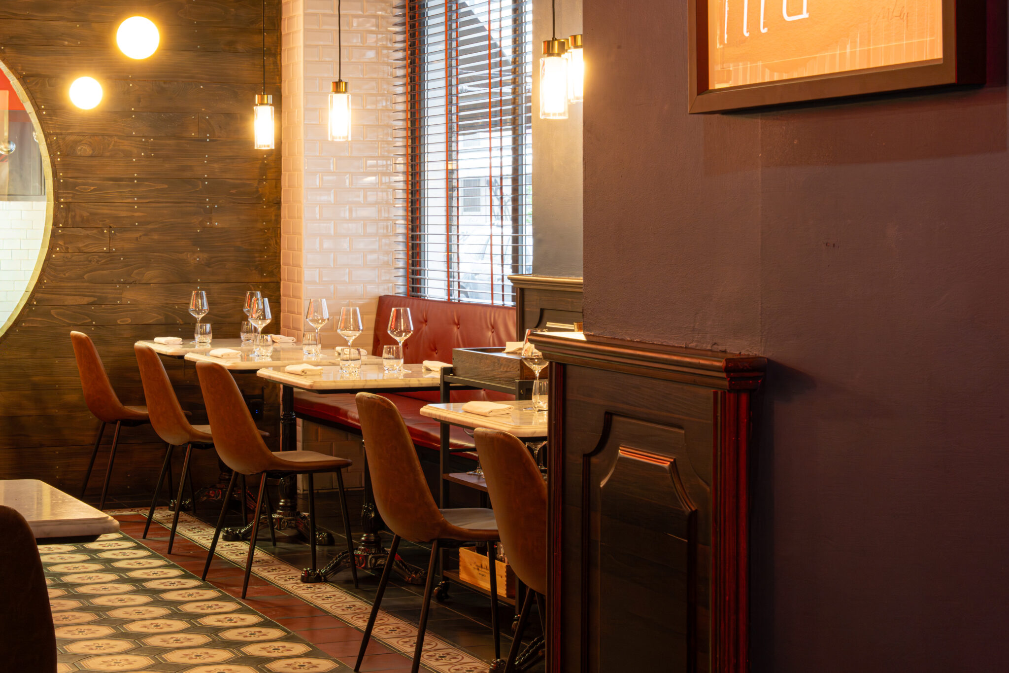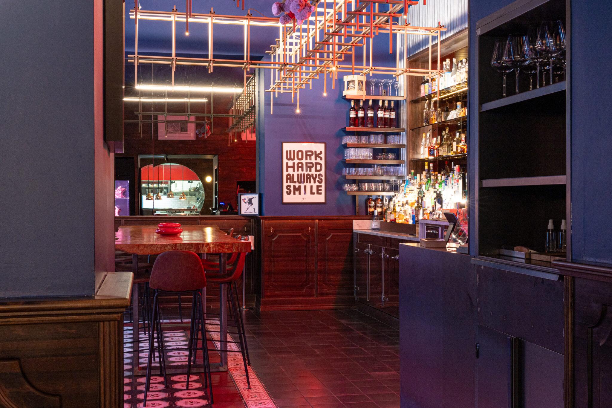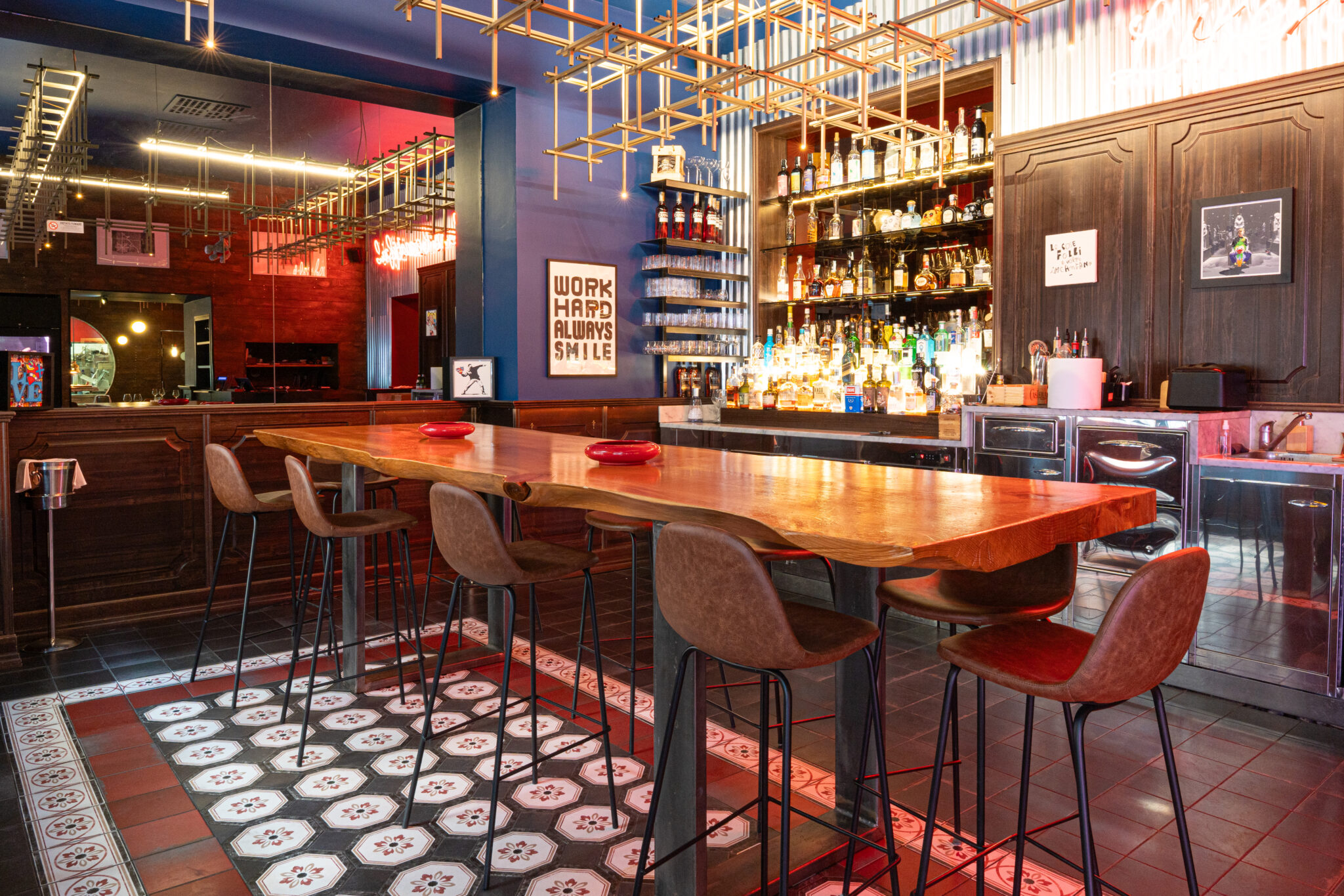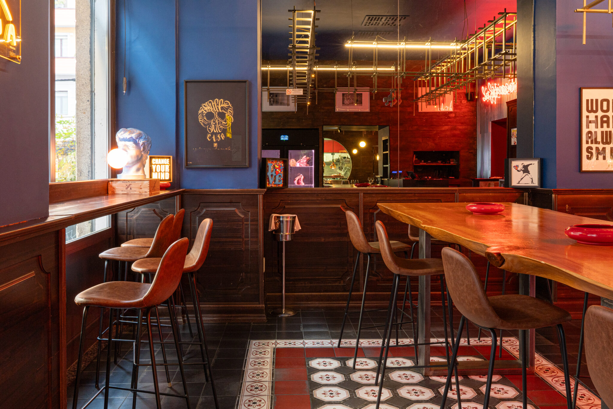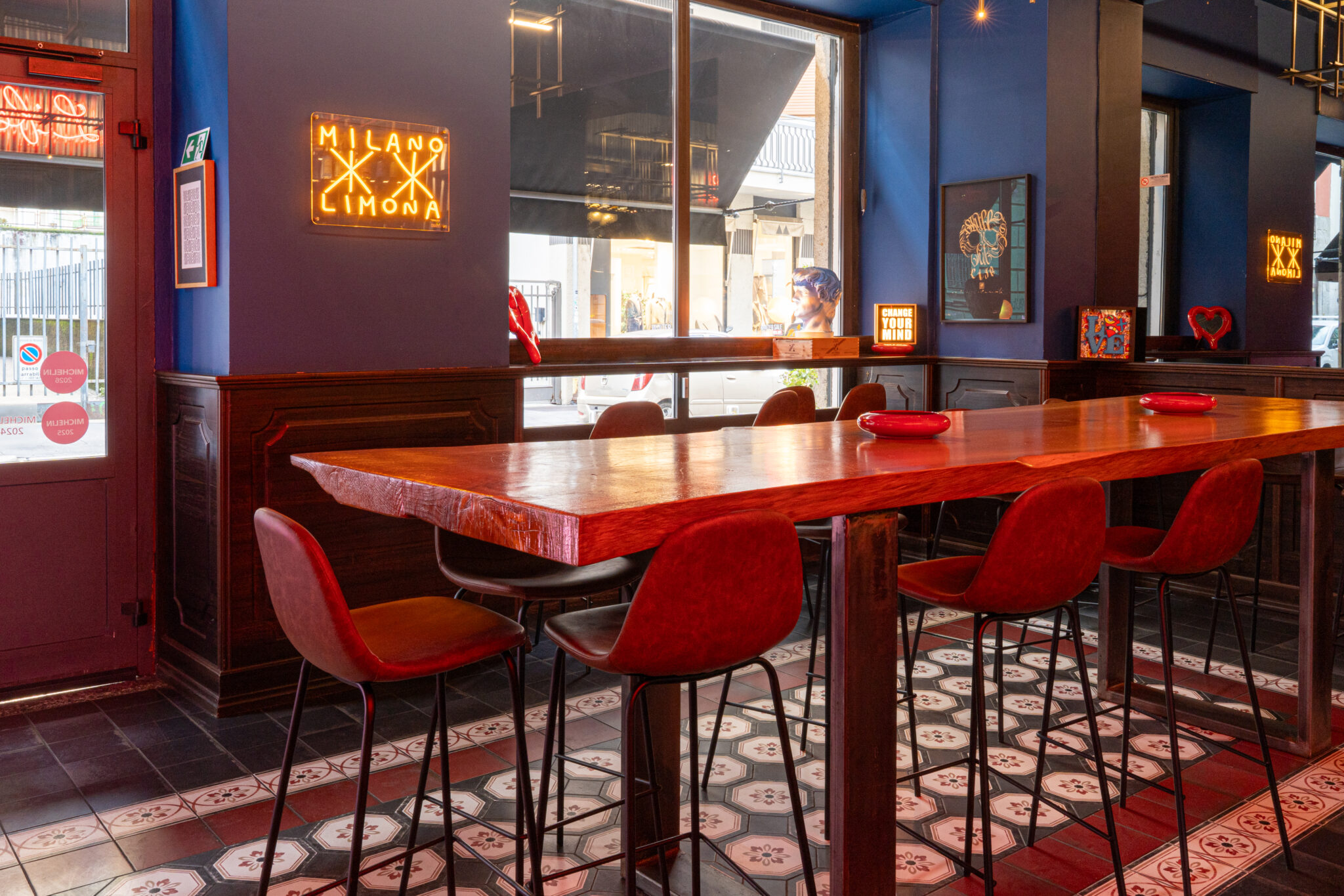 Circa 180 mq di spazio interno organizzato in ambienti curati e di design, con sala principale, area bar e spazi dedicati alla convivialità.