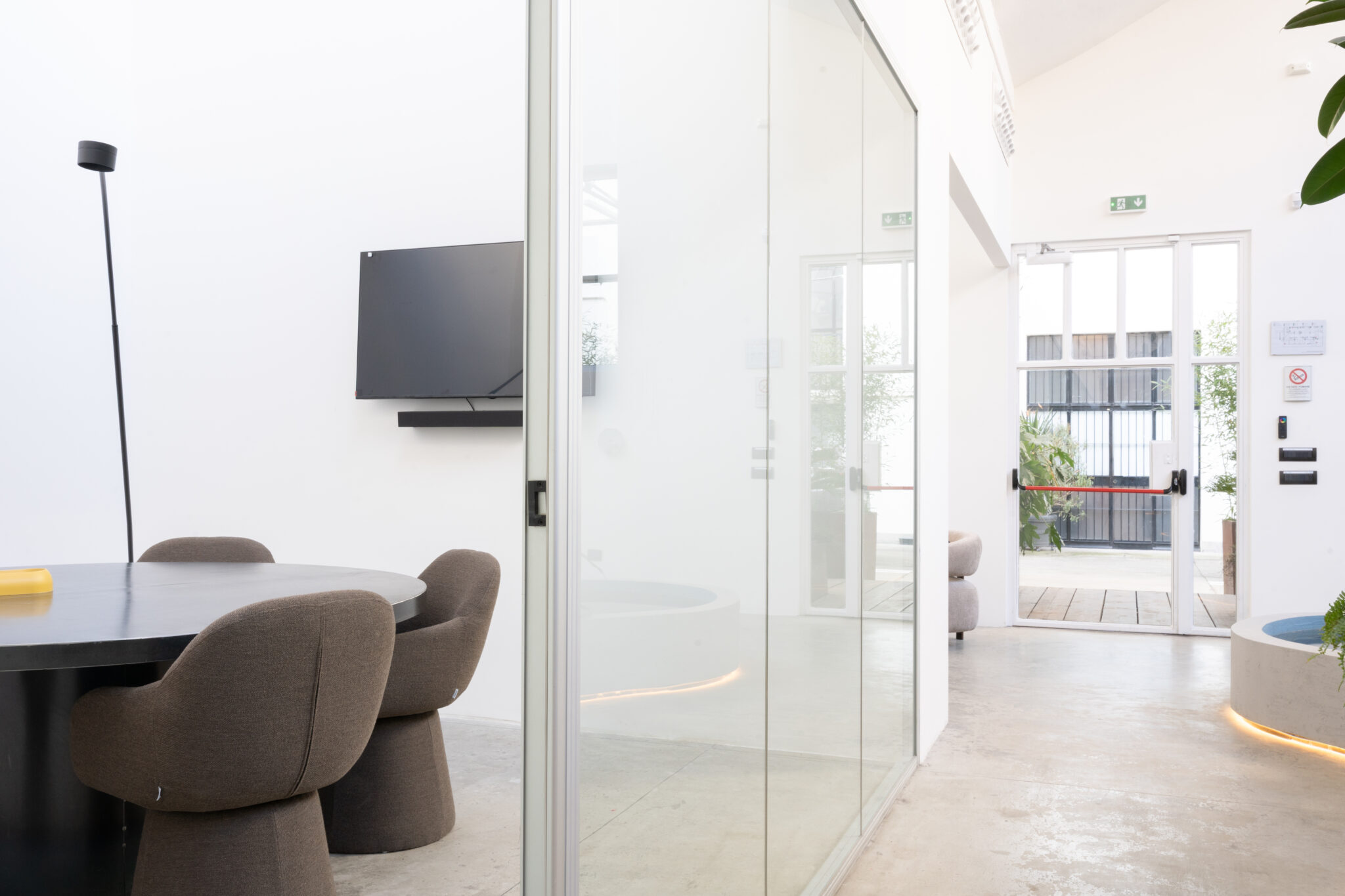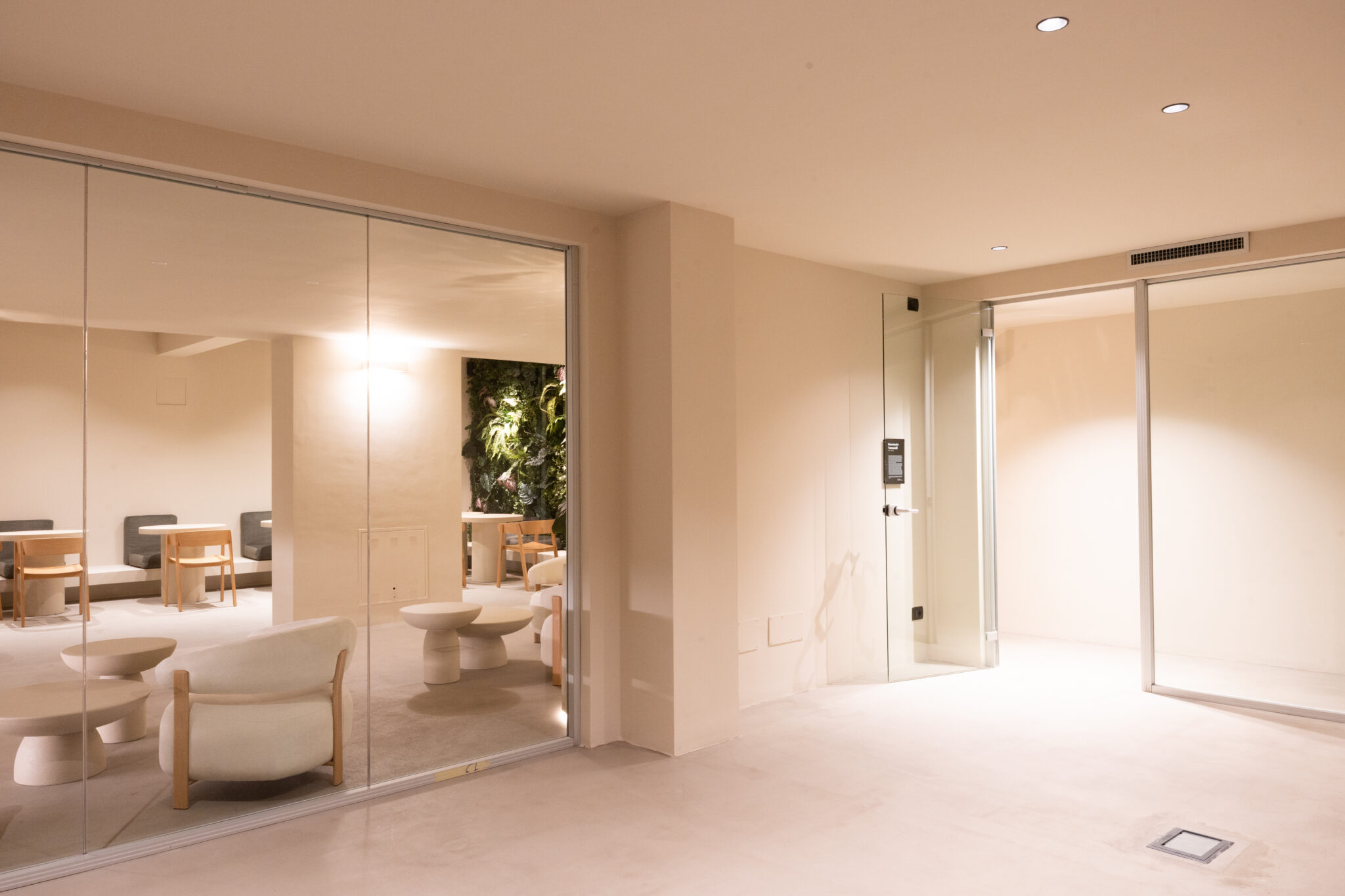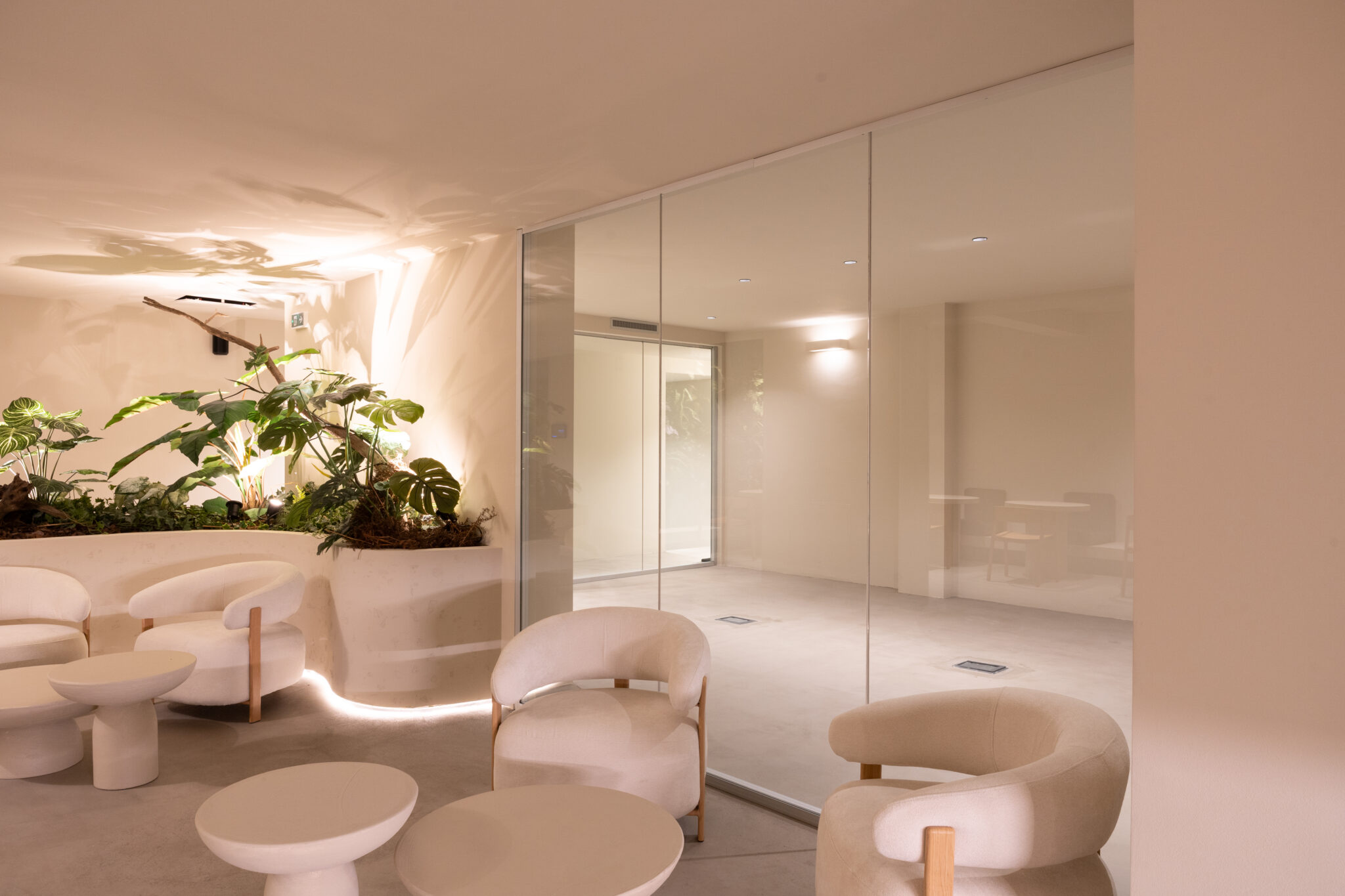 Spazio contemporaneo articolato su più livelli, caratterizzato da volumi ampi, superfici chiare e un’organizzazione fluida degli ambienti.