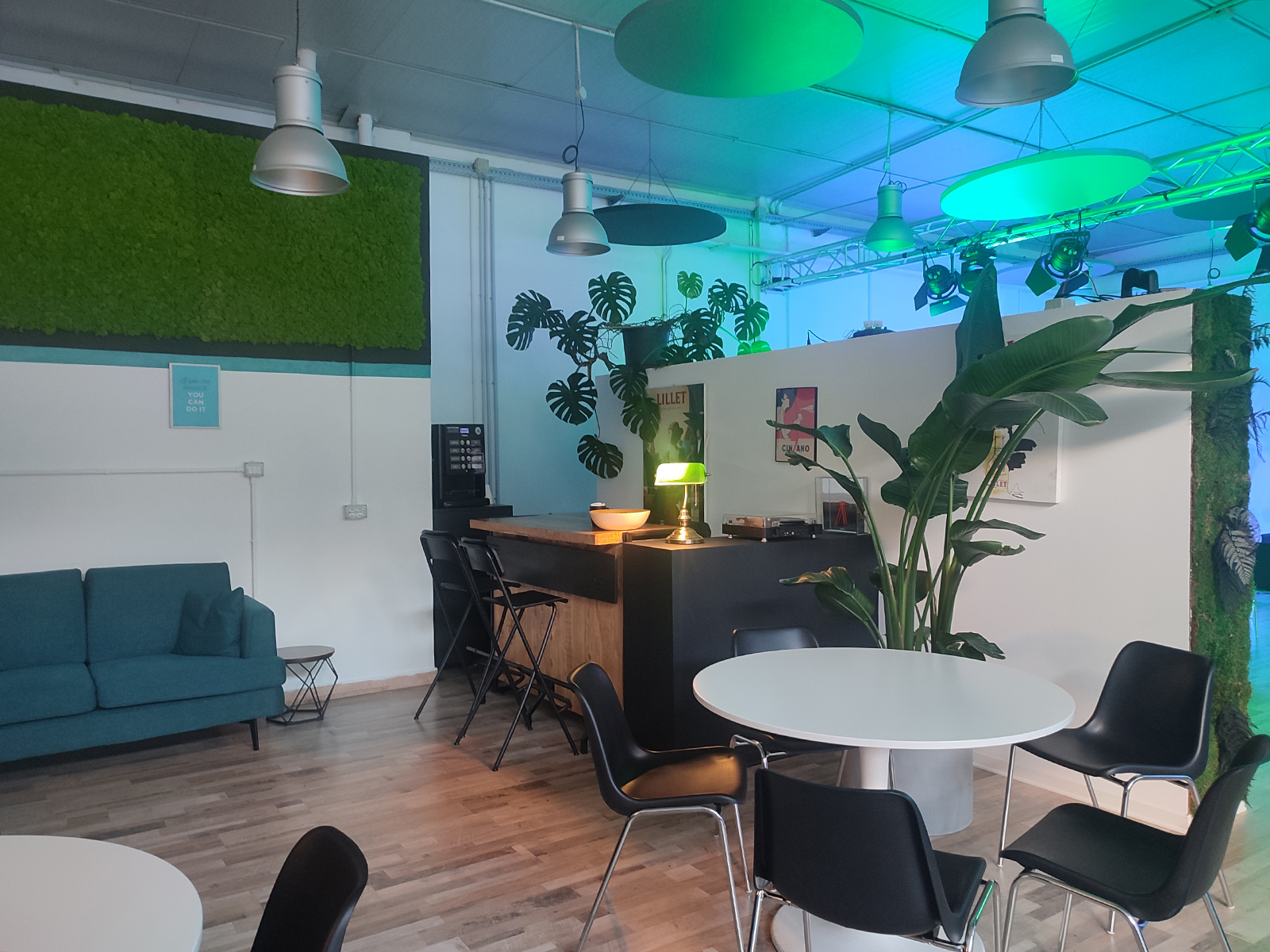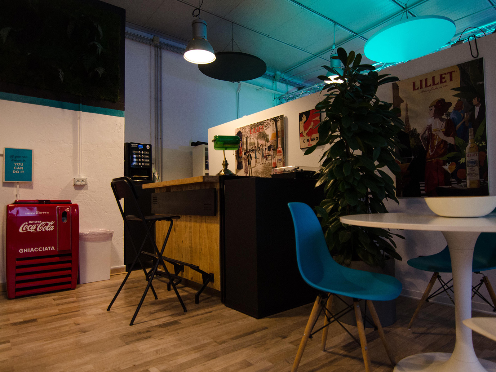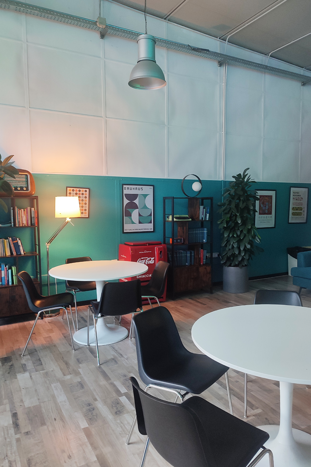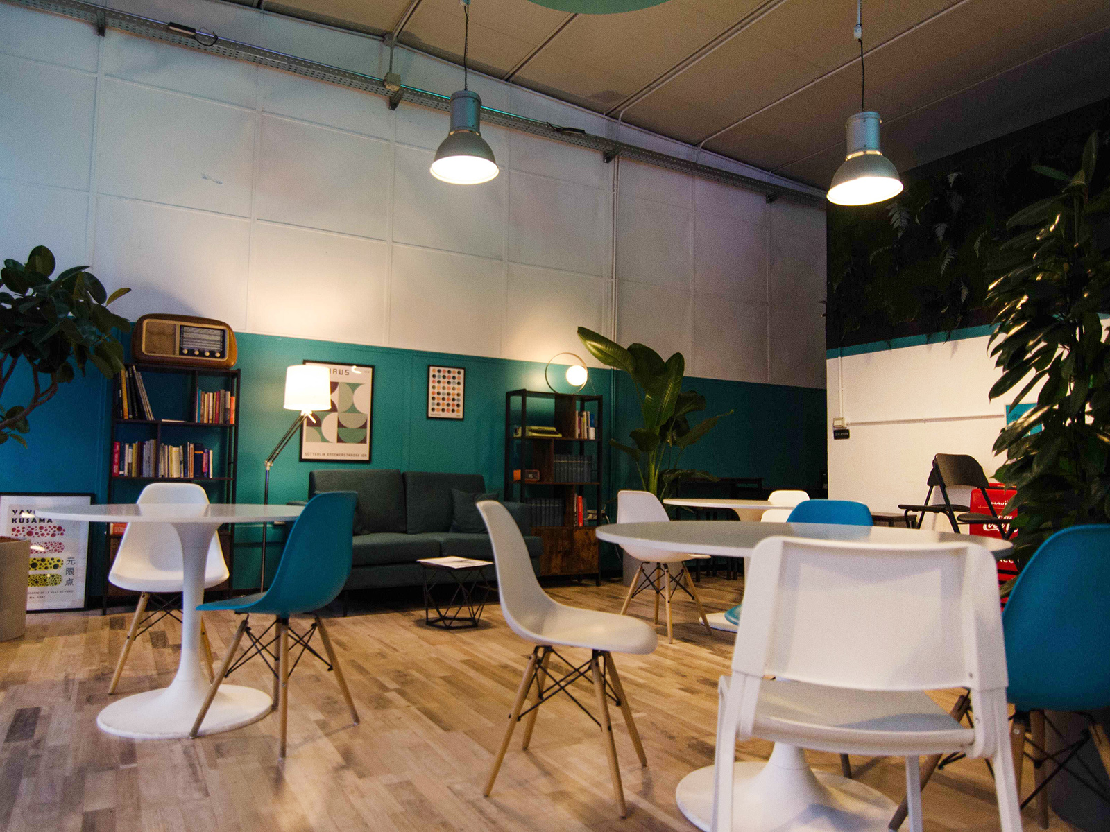 Location per eventi aziendali e associativi di circa 200 mq, situata in zona Greco di Milano. Caratterizzata da un open space con ampie vetrate che garantiscono un'illuminazione naturale. L'ingresso accoglie i partecipanti con una reception dedicata, mentre la zona living, offre un ambiente rilassante con un angolo bar.