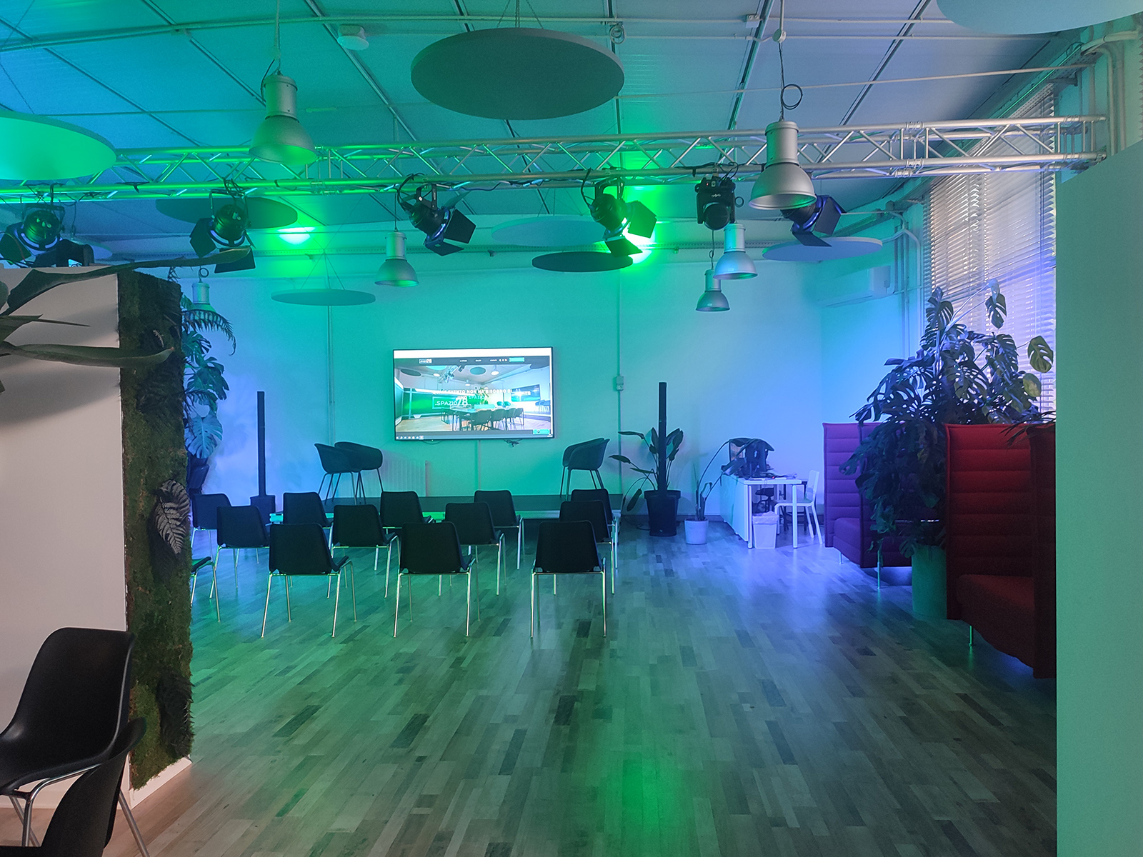La versatilità dello spazio consente diverse configurazioni, come platea, boardroom e isole. Questo spazio innovativo, perfetto per esperienze phygital, grazie a tecnologie all'avanguardia, come la realtà virtuale, la videorenderizzazione, l'intelligenza artificiale e il gaming, rendendo la location l'ideale per workshop, conferenze, team building ed eventi innovativi.