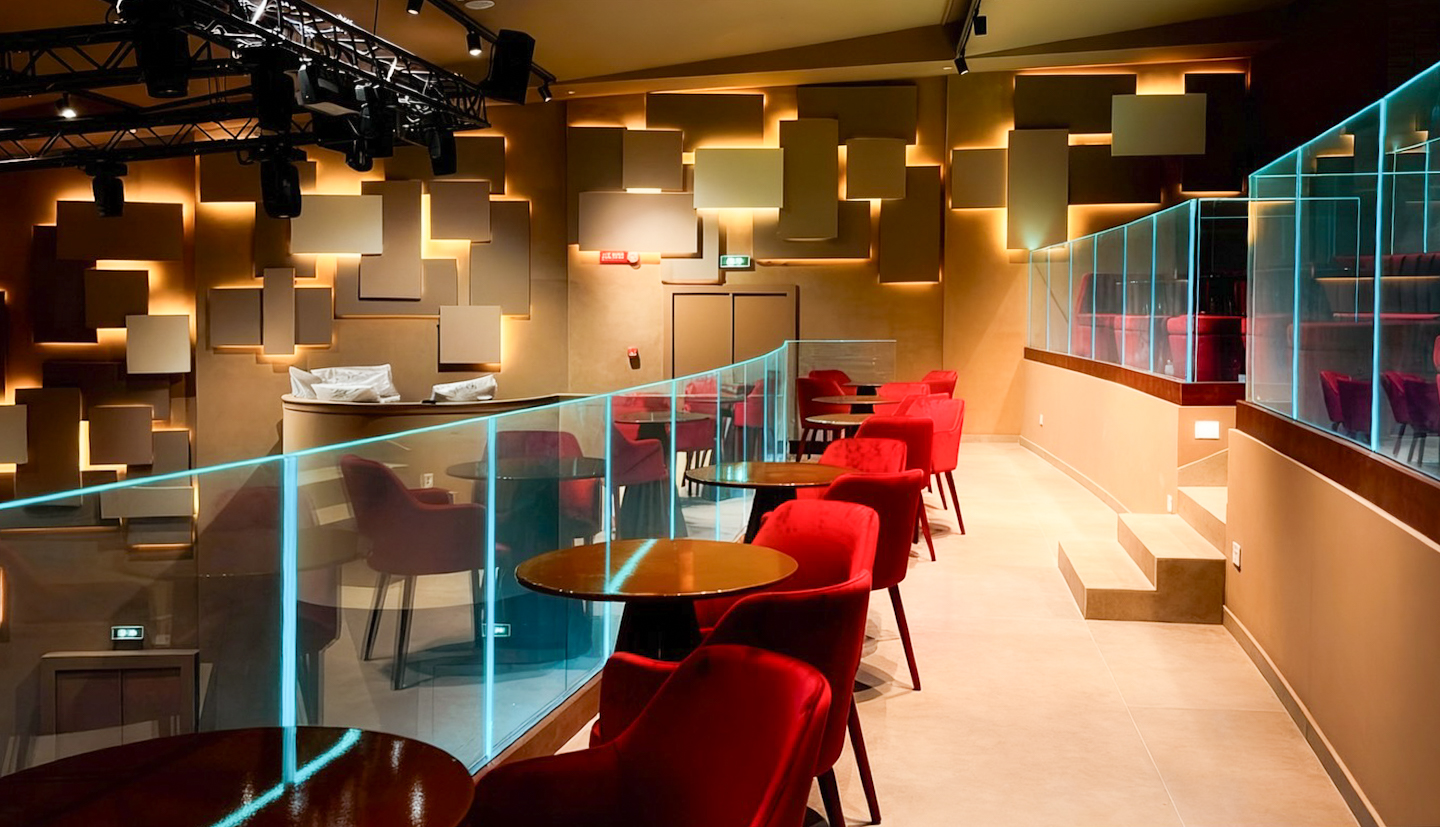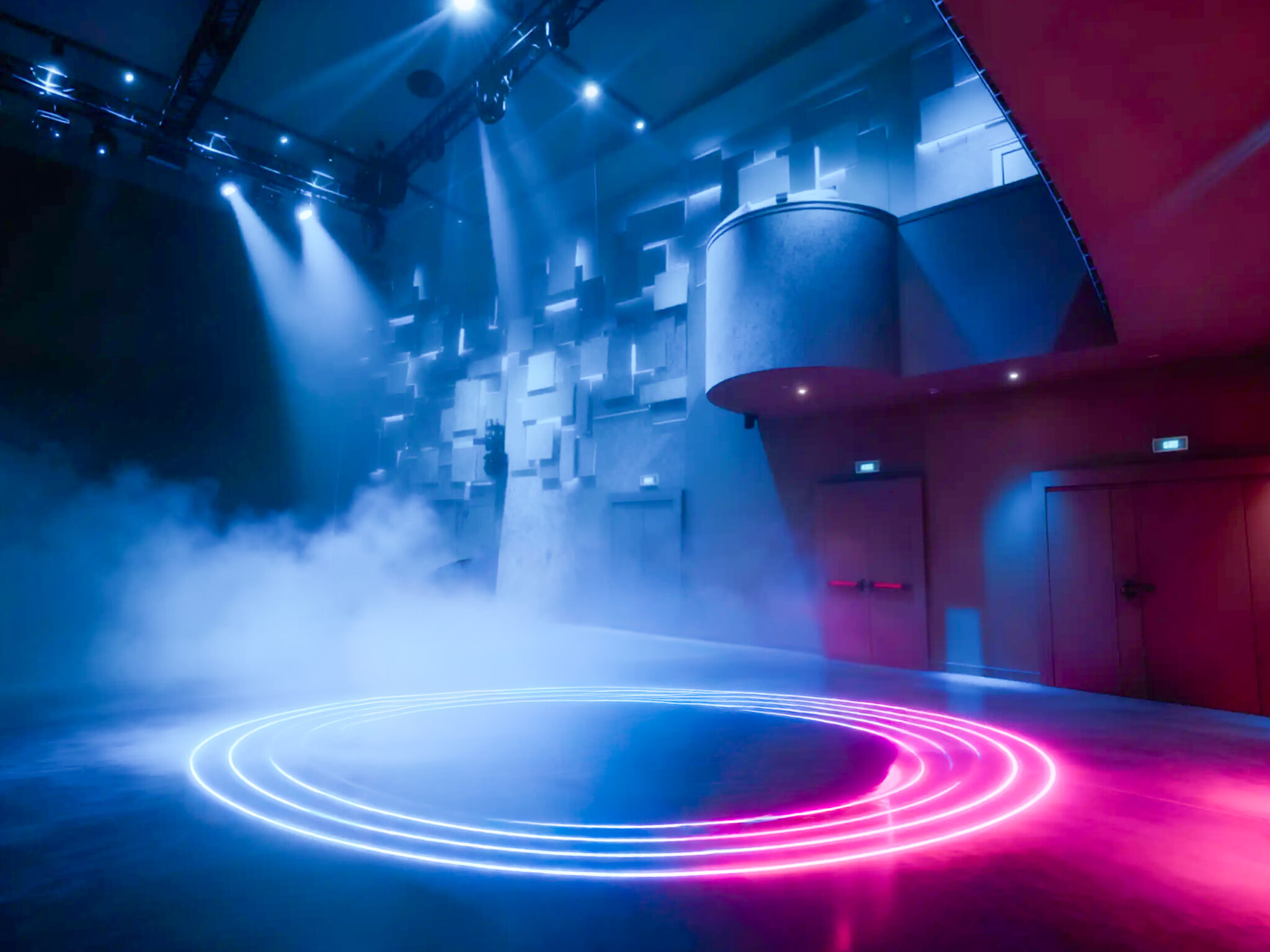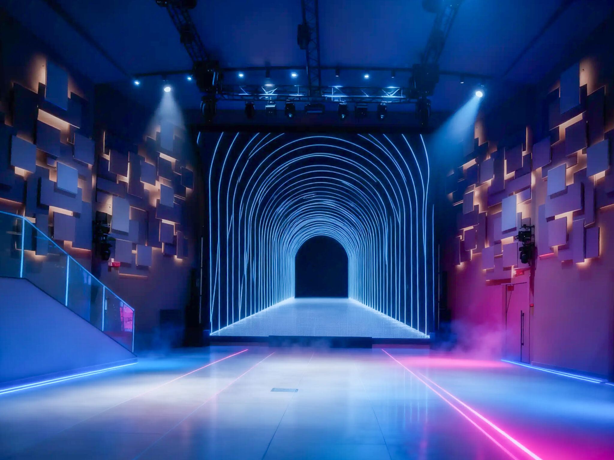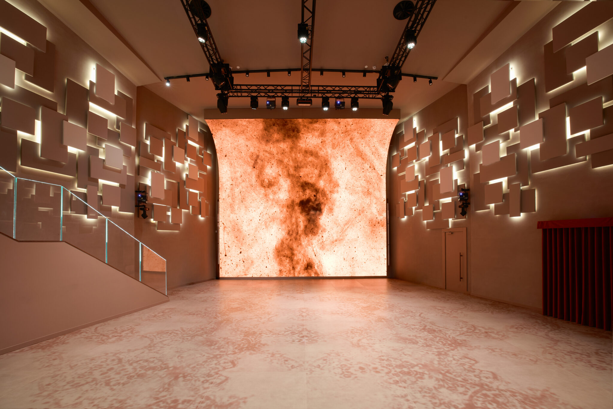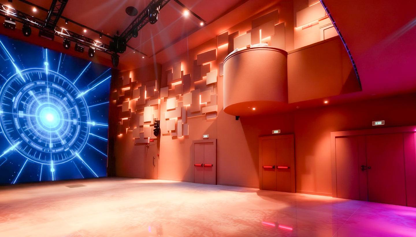 Circa 400 mq di spazio interno organizzato in un ambiente strutturato con palco, led wall e impianti tecnici integrati, ideale per eventi serali e produzioni.