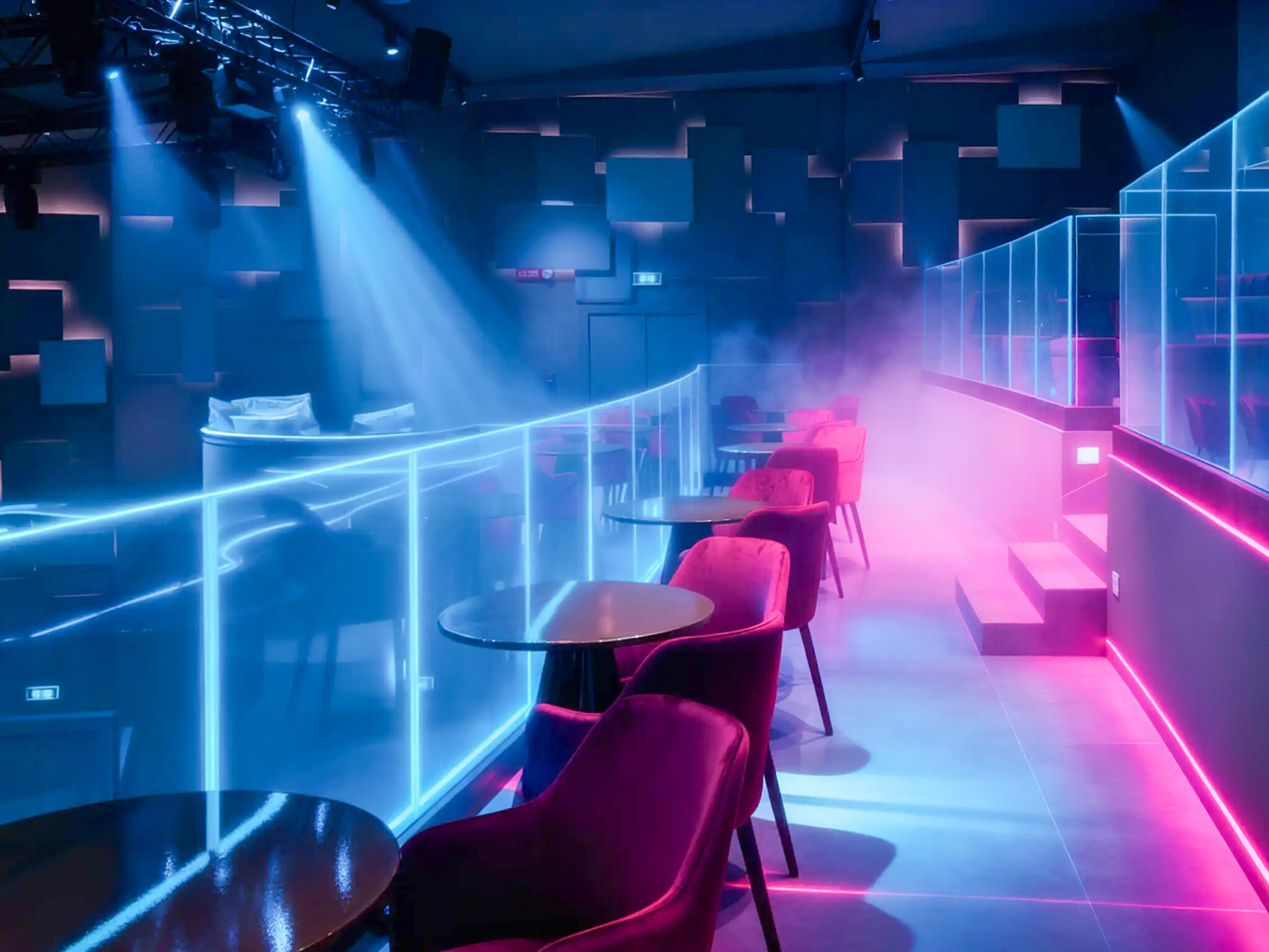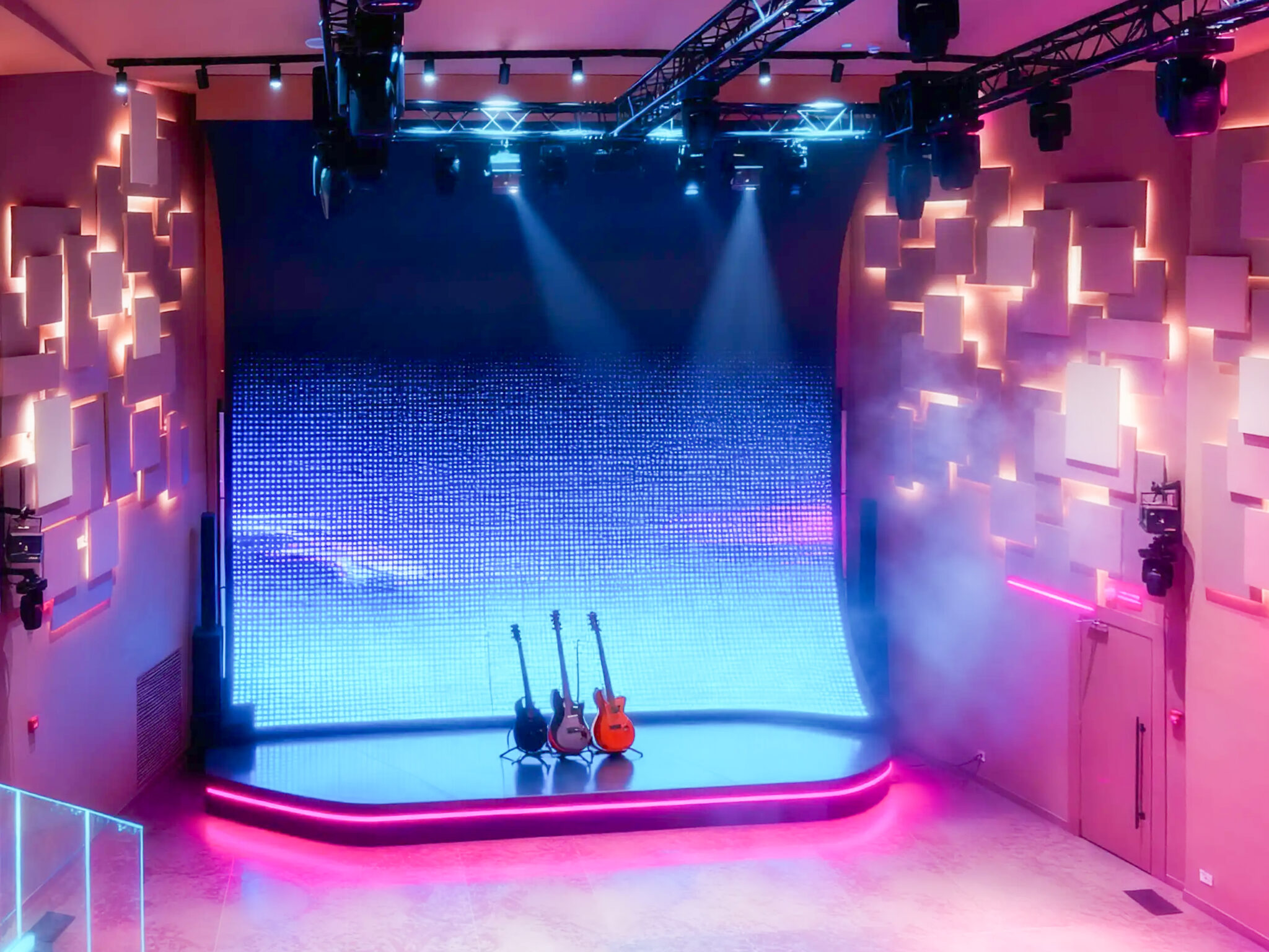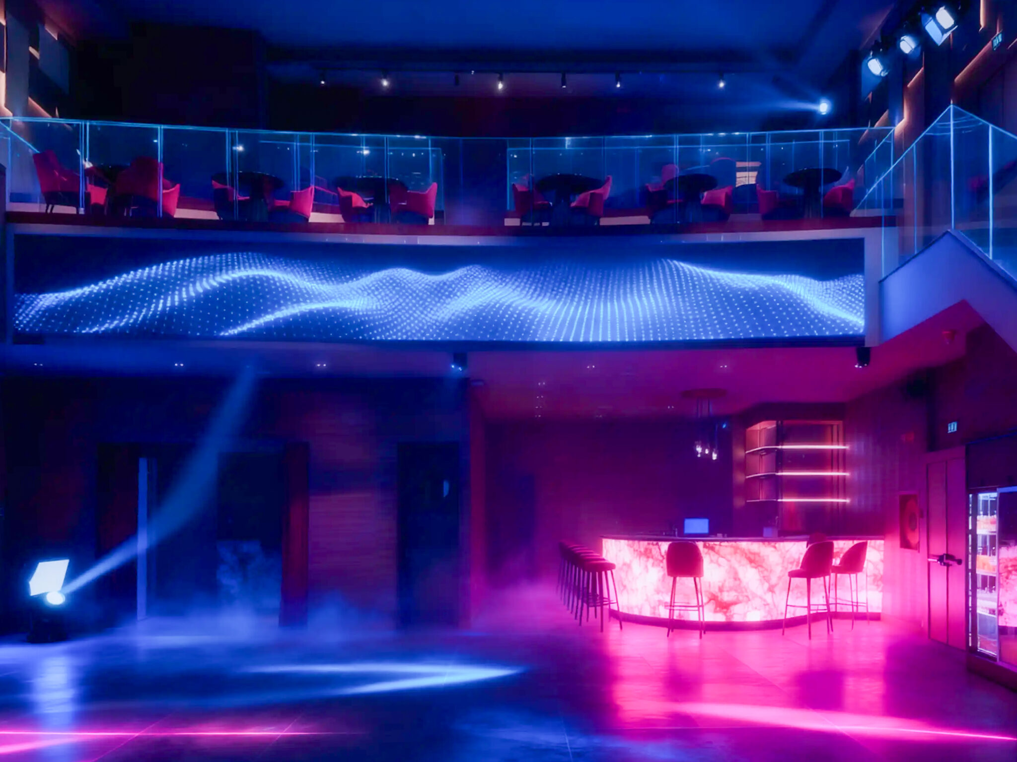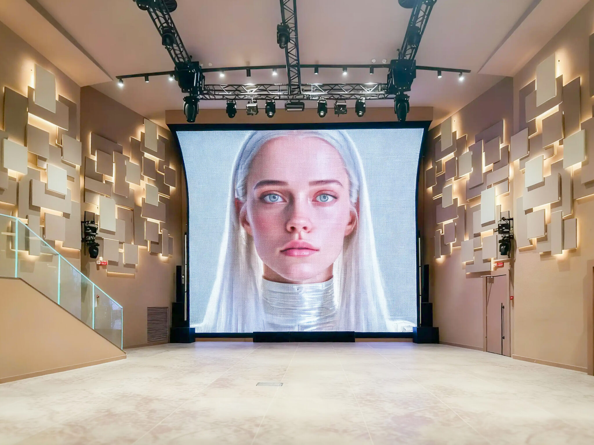 Circa 400 mq di spazio interno organizzato in un ambiente strutturato con palco, led wall e impianti tecnici integrati, ideale per eventi serali e produzioni.